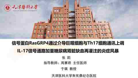 信号蛋白RasGRP4通过介导巨噬细胞与Th17细胞通讯上调IL-17信号通路加重糖尿病肾脏缺血再灌注的炎症风暴