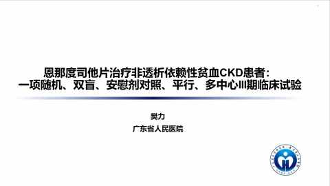 恩那度司他片治疗非透析依赖性贫血CKD患者:一项随机、双盲、安慰剂对照、平行、多中心III期临床研究