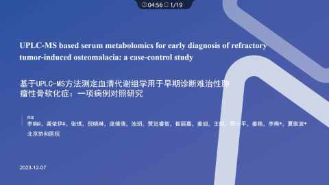 基于UPLC-MS的血清代谢组学早期诊断难治性肿瘤性骨软化症:一项病例对照研究