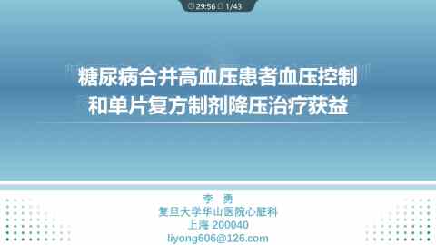糖尿病合并高血压患者血压控制和单片复方制剂降压治疗