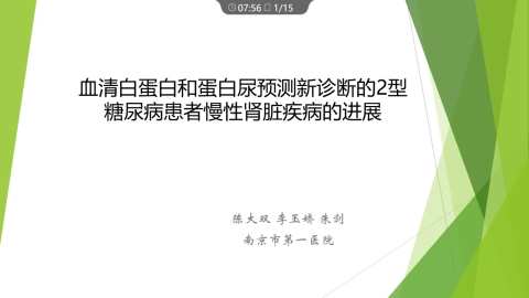 血清白蛋白和蛋白尿可预测新诊断2型糖尿病患者慢性肾脏疾病的进展