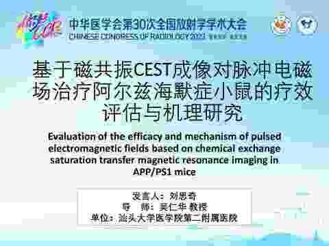 基于磁共振CEST成像对脉冲电磁场治疗阿尔兹海默症小鼠的疗效评估与机理研究