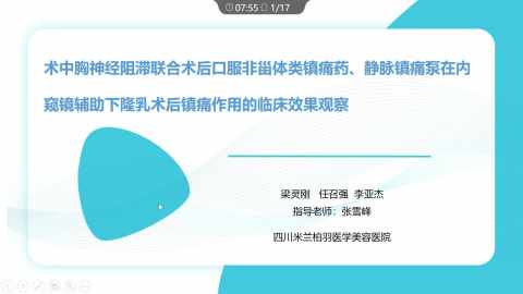 术中胸神经阻滞联合术后口服非甾体类镇痛药、静脉镇痛泵在内窥镜辅助下隆乳术后镇痛作用的临床效果观察