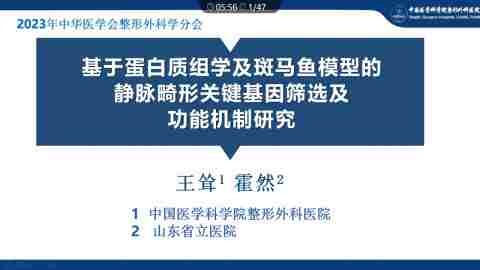 基于蛋白质组学及斑马鱼模型的静脉畸形关键基因筛选及功能机制研究