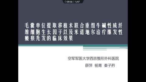 毛囊单位提取移植术联合重组牛碱性成纤维细胞生长因子及米诺地尔治疗继发性瘢痕秃发的临床效果