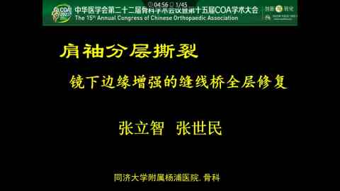关节镜下边缘增强的缝线桥全层修复肩袖分层撕裂