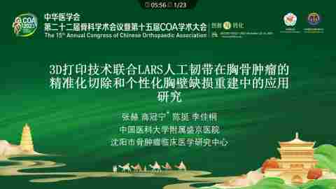 3D打印技术联合LARS人工韧带在胸骨肿瘤的精准化切除和个性化胸壁缺损重建中的应用研究
