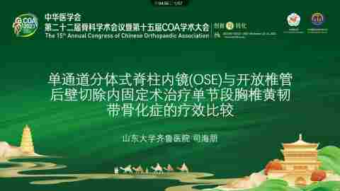 单通道分体式脊柱内镜(OSE)与开放椎管后壁切除术治疗单节段胸椎黄韧带骨化症的疗效比较