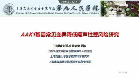 AAK1基因常见变异降低噪声性听力损失风险相关研究