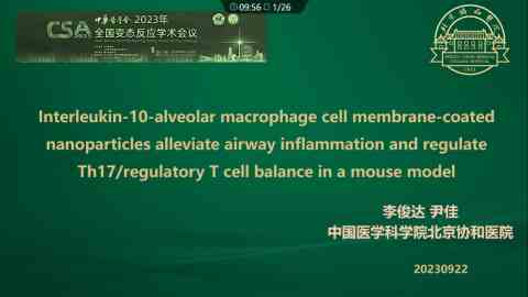 Interleukin-10-alveolar macrophage cell membrane-coated nanoparticles alleviate airway inflammation and regulate Th17/regulatory T cell balance in a mouse model
