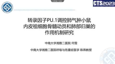 转录因子PU.1调控肺气肿小鼠内皮祖细胞骨髓动员和肺部归巢的作用机制研究