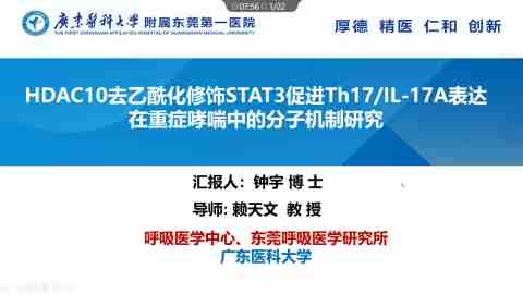HDAC10去乙酰化修饰STAT3促进Th17/IL-17A表达在重症哮喘中的分子机制