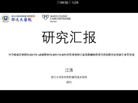 川芎嗪通过抑制TLR4/NF-κB通路和NLRP1/NLRP3炎性体 抑制大鼠角膜碱烧伤诱导的角膜炎症和新生血管形成