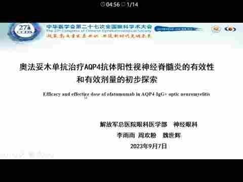 奥法妥木单抗治疗视神经脊髓炎相关性视神经炎的临床研究