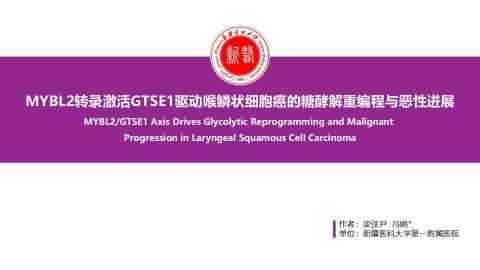 MYBL2转录激活GTSE1驱动喉鳞状细胞癌的糖酵解重编程与恶性进展