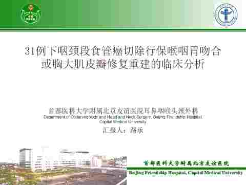 31例下咽颈段食管癌切除行保喉咽胃吻合或胸大肌皮瓣修复重建的临床分析