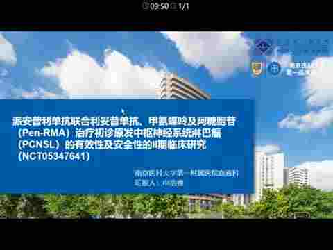 派安普利单抗联合利妥昔单抗、甲氨蝶呤及阿糖胞苷(Pen-RMA)治疗初诊原发中枢神经系统淋巴瘤(PCNSL)的有效性及安全性的II期临床研究(NCT05347641)