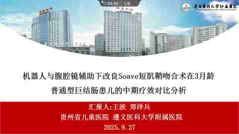机器人与腹腔镜辅助下改良Soave短肌鞘吻合术在3月龄普通型巨结肠患儿的中期疗效对比分析