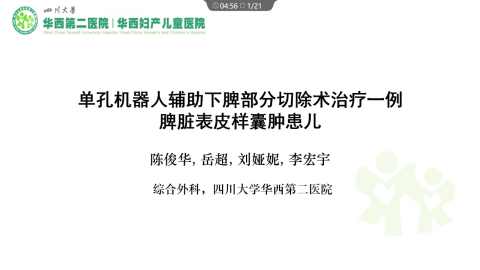 单孔机器人辅助下部分脾切除术治疗一例脾脏表皮样囊肿患儿