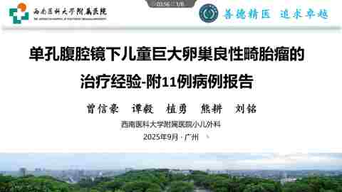单孔腹腔镜下儿童巨大卵巢良性畸胎瘤的治疗经验-附11例病例报告