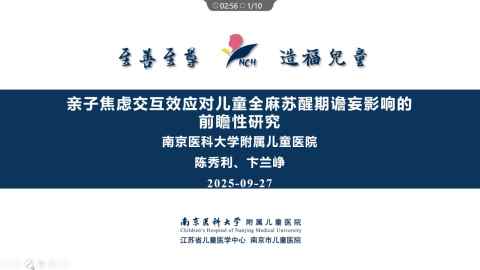亲子焦虑交互效应对儿童全麻苏醒期谵妄影响的前瞻性研究