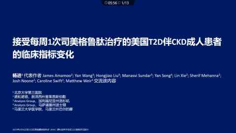 美国成人T2D合并CKD患者接受司美格鲁肽每周一次治疗后临床指标的变化