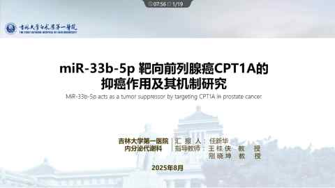 MIR-33b-5p 靶向前列腺癌CPT1A的肿瘤抑制作用