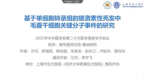 基于单细胞转录组的雄激素性秃发中毛囊干细胞关键分子事件的研究