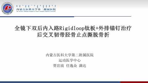 全镜下双后内入路Rigidloop钛板 外排锚钉治疗后交叉韧带胫骨止点撕脱骨折