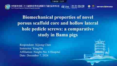 Biomechanical properties of novel porous scaffold core and hollow lateral hole pedicle screws: a comparative study in Bama pigs