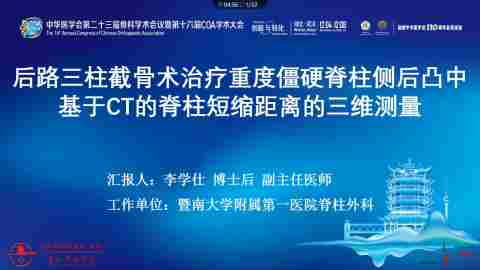 后路三柱截骨术治疗重度僵硬脊柱侧后凸中基于CT的脊柱短缩距离的三维测量