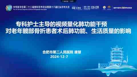 专科护士主导的视频量化肺功能干预对老年髋部骨折患者术后肺部感染、生活质量的影响