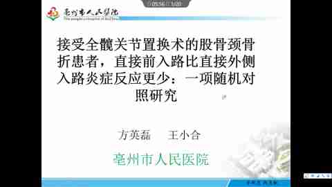 接受全髋关节置换术的股骨颈骨折患者,直接前入路比直接外侧入路炎症反应更少:一项随机对照研究