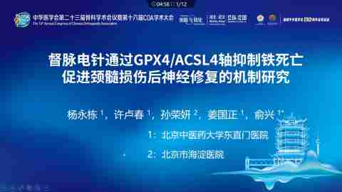 督脉电针通过GPX4/ACSL4轴抑制铁死亡促进颈髓损伤后神经修复的机制研究