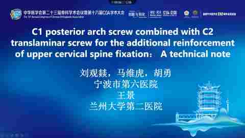 C1后弓螺钉作为补充加强固定在上颈椎后路固定中应用