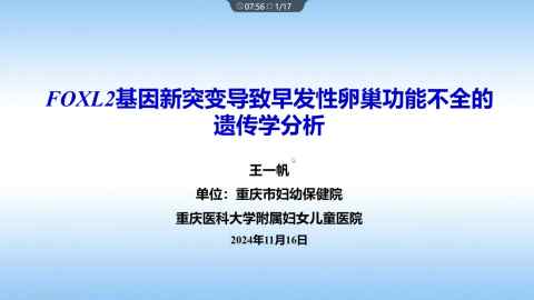 FOXL2基因新突变导致早发性卵巢功能不全的遗传学分析