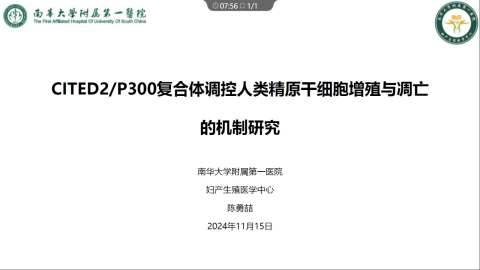 CITED2/P300复合体调控人类精原干细胞增殖与凋亡的机制研究